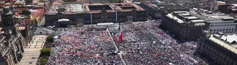 Photo. An estimated 280,000 people packed the Zócalo square in Mexico City to cheer President Scheinbaum as she delivered the Grito de Independencia. It was one of the largest grito crowds in Mexican history. Photo: Instagram de Presidenta